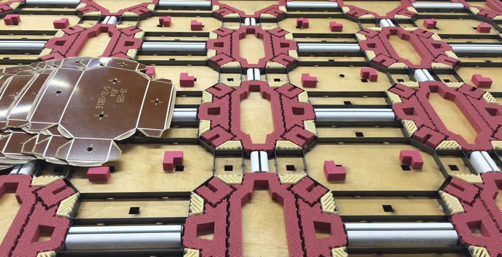 We look at your process from ordering tooling, file translation, tooling prepress areas, tooling specifications (whether industry standards or unique customer requirements). Our experience in sheet feed tooling includes all aspects of diecutting, creasing with phenolic counters, creasing with steel counters, Dynamic Stripping and high-speed blanking. Sharples’ tooling saves press time.